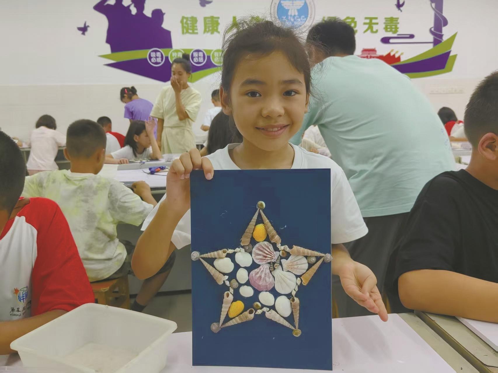 制作贝壳画。张志龙 摄