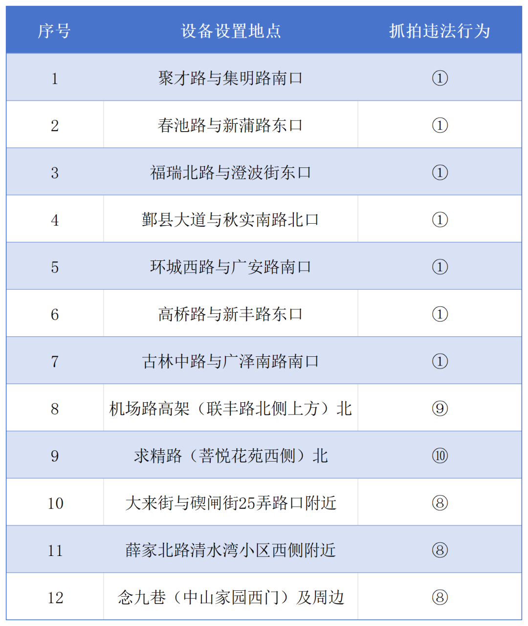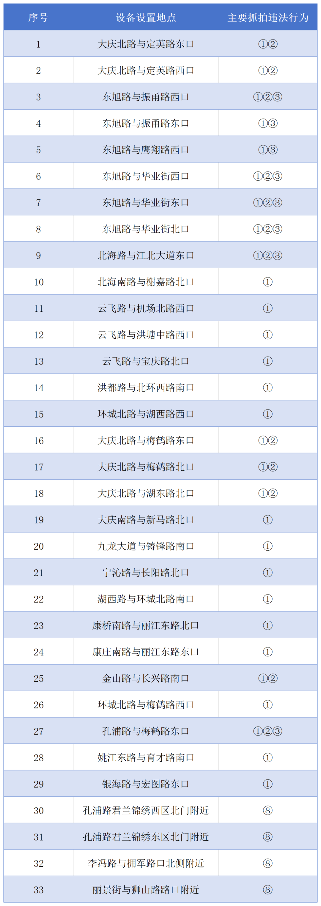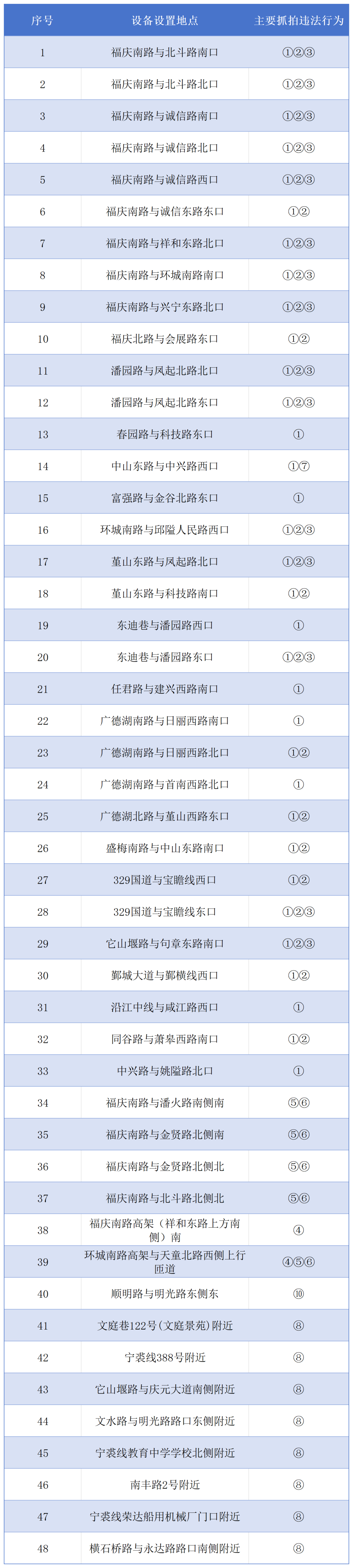具体设置点位及抓拍违法行为: