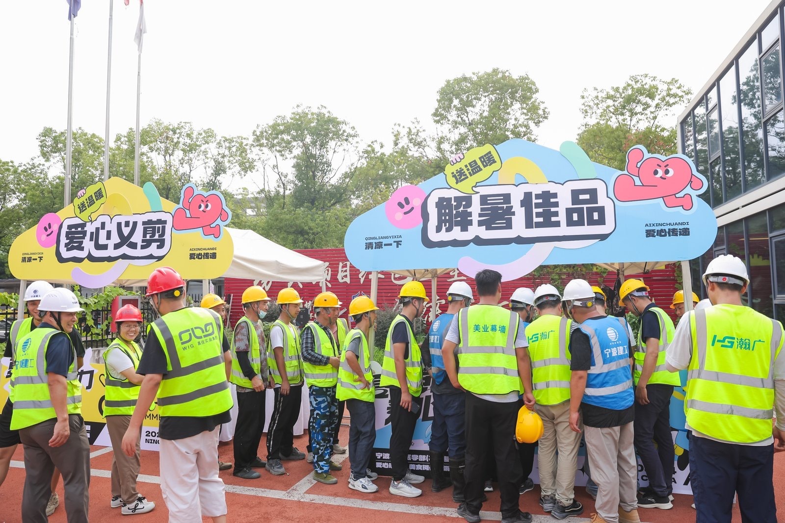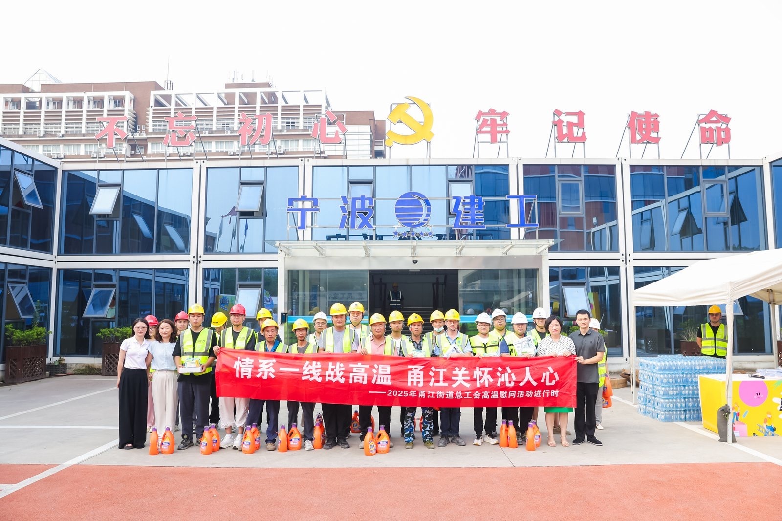正值三伏酷暑,为切实做好高温季节防暑降温工作,保障一线建设者的生命安全和身体健康,8月4日,宁波市总工会法工部副部长丰芳芳(甬江压赛堰片区长)、宁波市总工会保障部四级调研员余敏华(甬江星源网约车工会驿站长)、江北区甬江街道总工会主席郑亚萍一行深入宁波大学医学部项目施工现场,开展“夏日送清凉”慰问活动,为奋战在高温一线的300余名建筑工人送去组织的关怀与清凉。