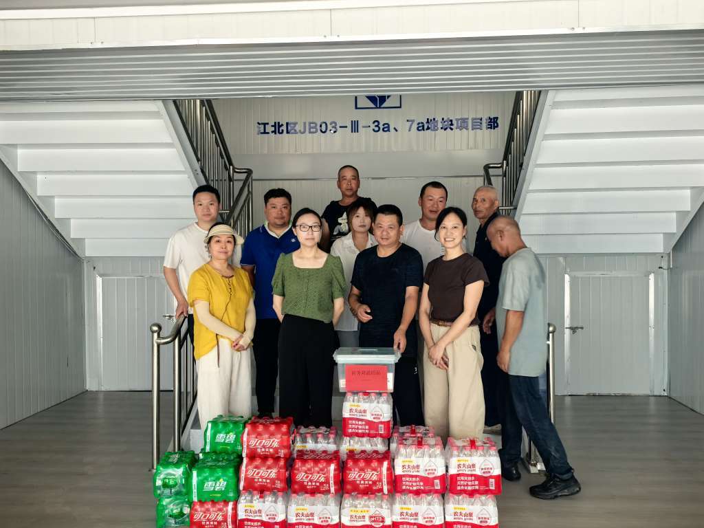 当天下午,甬江街道总工会主席一行来到宁波大学医学部(本部基地)综合大楼项目部,向坚守岗位、辛勤付出的一线施工人员致以诚挚的问候和衷心的感谢。慰问组现场为工人们送上了精心准备的防暑降温物资,并叮嘱大家在抢抓工程进度的同时,务必注意劳逸结合,科学安排作息,切实做好个人防护,避免高温中暑。