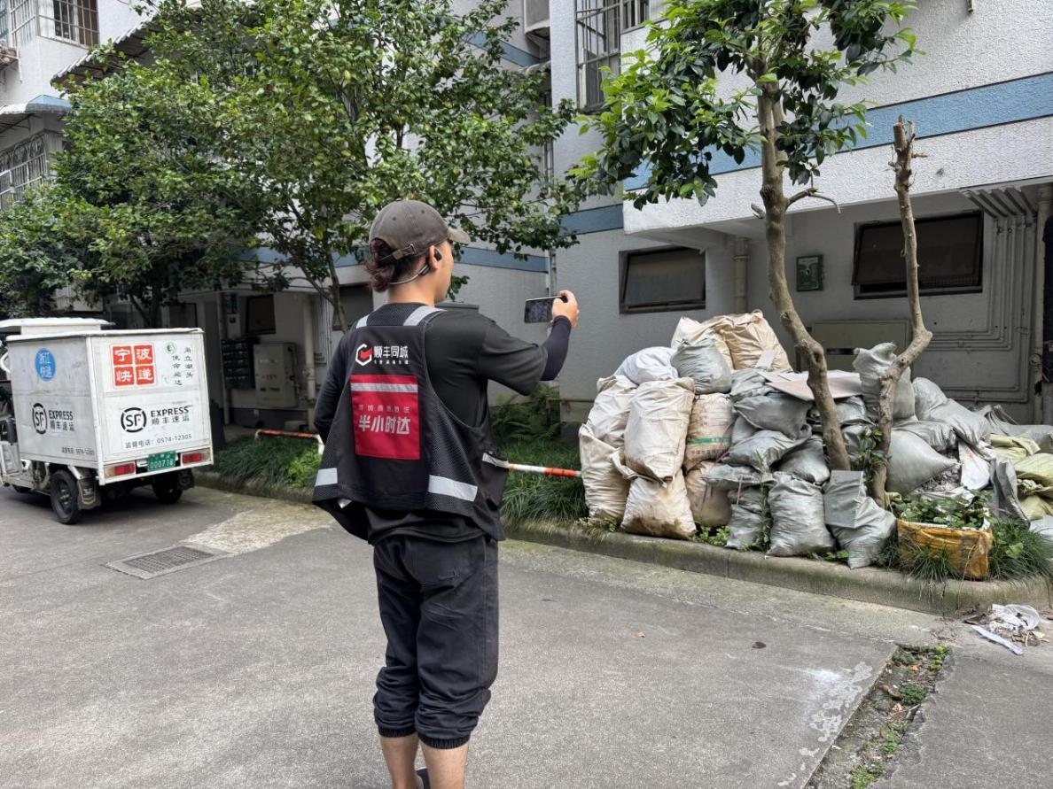 小哥们在派件途中,特别留意垃圾分类投放点的运行状况:桶身是否破损、标识是否清晰、周边环境是否脏乱差。 通过便捷的数字化工具,发现问题只需简单几步操作,信息便能精准直达责任方。居民张阿姨也感受到了变化:“最近投放点干净整齐多了,满了有人及时清。看到小哥在关注,大家也更自觉了。”