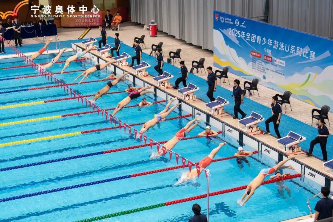 8月7日,2025年全国青少年游泳U系列比赛(宁波站)在宁波奥体中心游泳馆圆满落幕。来自全国各地的65支队伍,近千名游泳小将参加了本站比赛角逐。
