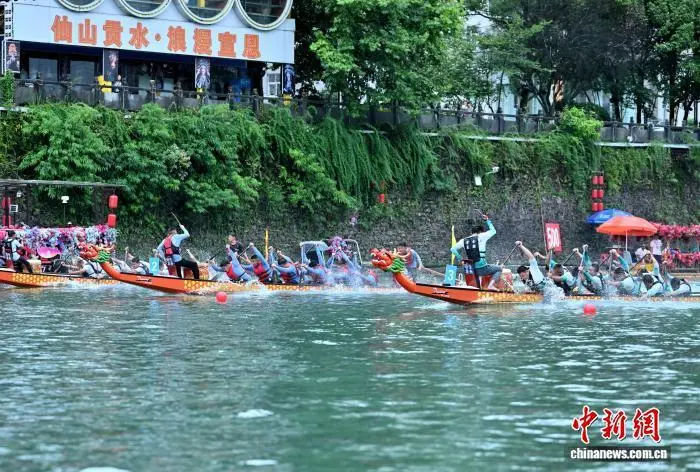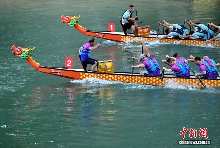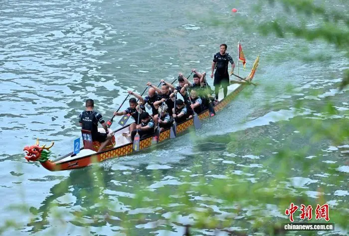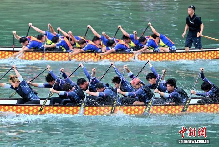 图为2025中国民族民间龙舟公开赛比赛现场。陈绪开 摄