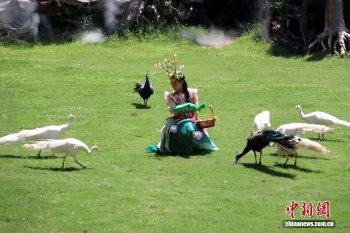 图为孔雀表演诠释人与自然和谐相处。王中举 摄
