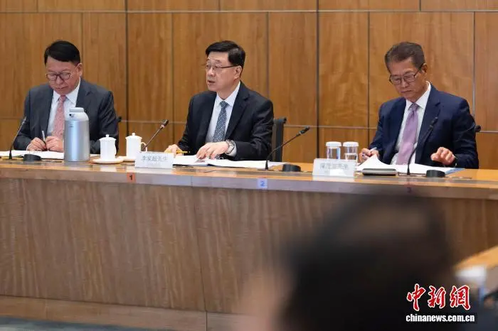 8月13日,香港特区行政长官李家超(中)主持行政长官反恐督导组首次会议。 (香港特区政府新闻处供图)