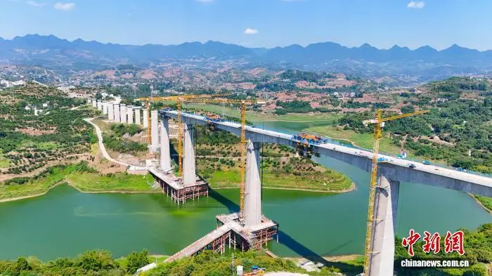 图为新渝万高铁渠溪河双线特大桥建设现场。渝万铁路有限责任公司供图