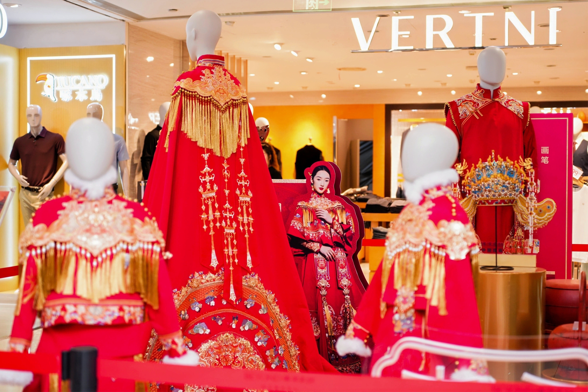 此次活动的圆满举办,充分证明了非遗不是博物馆里的标本,而是能走进商场、融入生活的“活文化”。据了解,活动结束后,市民可在宁波二百五楼和六楼非遗展陈区体验经典婚俗非遗展陈,其中“婚嫁系列”龙凤呈祥礼服以凤凰图腾为灵感来源,整体款式为改良版秀禾服,寓意绵延不断、福山寿海、百子千孙,整身运用盘金盘银刺绣,华美精致,将历史、风俗与特色文化融于艺术创作,展现出高级的时尚表现形式。