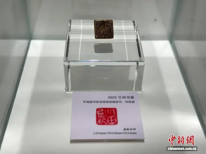 此次展品来自浙江平湖玺印篆刻博物馆,该馆副馆长王军在兰州接受中新社记者采访时称,其镇馆之宝“成纪右田”此次在兰州参展。此印官职“成纪右田”系先秦时期的成纪地区田官,而秦时成纪就位于今天甘肃省的静宁县、秦安县一带。“‘成纪右田’官印存世极少,可以说它是千年后重回故里。”