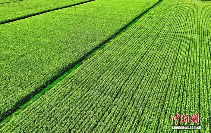 甘肃省武威市民勤县,盐碱地变身 “丰产田”, 治理区玉米长势喜人迎丰收。卢璐 摄