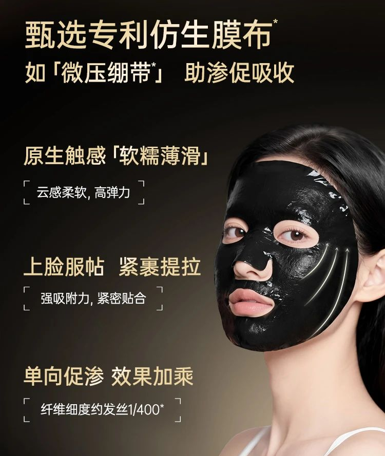卓越成分需要高效载体,膜法世家创新研发的专利仿生膜布(专利号ZL 2023 2 0915579.9)(纤度仅0.17D,约发丝的1/400),触感软薄糯滑,能紧密贴合面部轮廓。这种独特的结构设计,不仅带来舒适的肤感体验,更有助于促进面膜精华的传导与肌肤吸收效率,让每一次敷用都更有效果。另外,膜布本身也通过了SGS安全性检测,使用无忧。