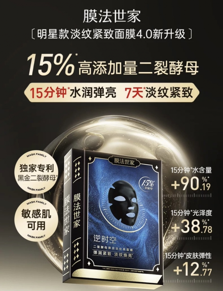 专研面膜领域18年的膜法世家带来了高效解决方案——第四代-逆时空二裂酵母弹润淡纹黑面膜(昵称:膜法世家二裂酵母面膜),正成为应对“出门旅游带什么面膜好”这一难题的热门之选。