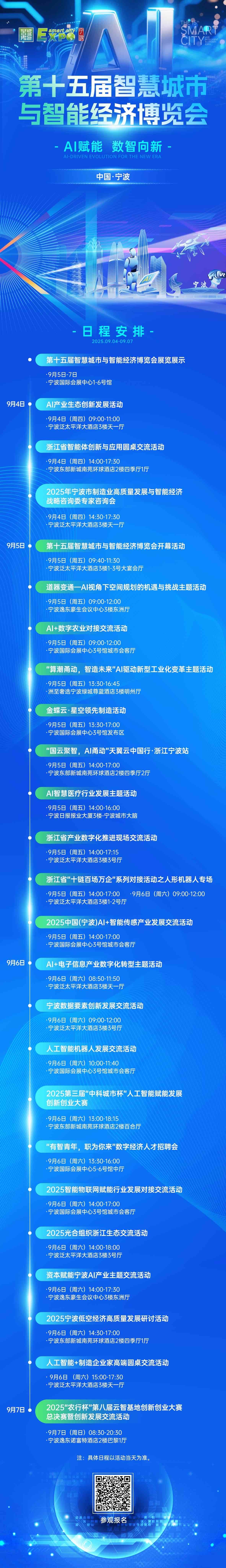 9月5日至7日,第十五届智慧城市与智能经济博览会(以下简称智博会)将在宁波举行。8月26日,记者从宁波市经信局获悉,第十五届智博会的日程安排正式发布。