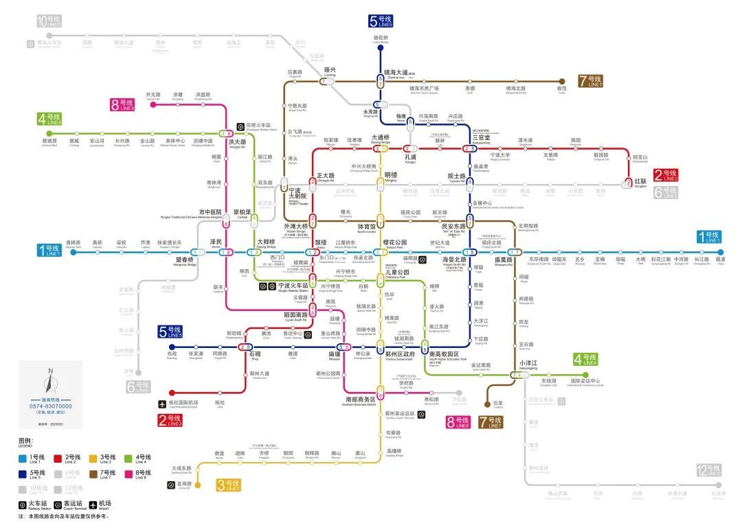7号线与1-5号线以及未来建成的6号线、市域铁路慈溪线、象山线均可换乘。值得一提的是,首个“三线换乘”小洋江站,可通道换乘4、7号线,未来待市域铁路象山线开通后,更可首次实现同台换乘。