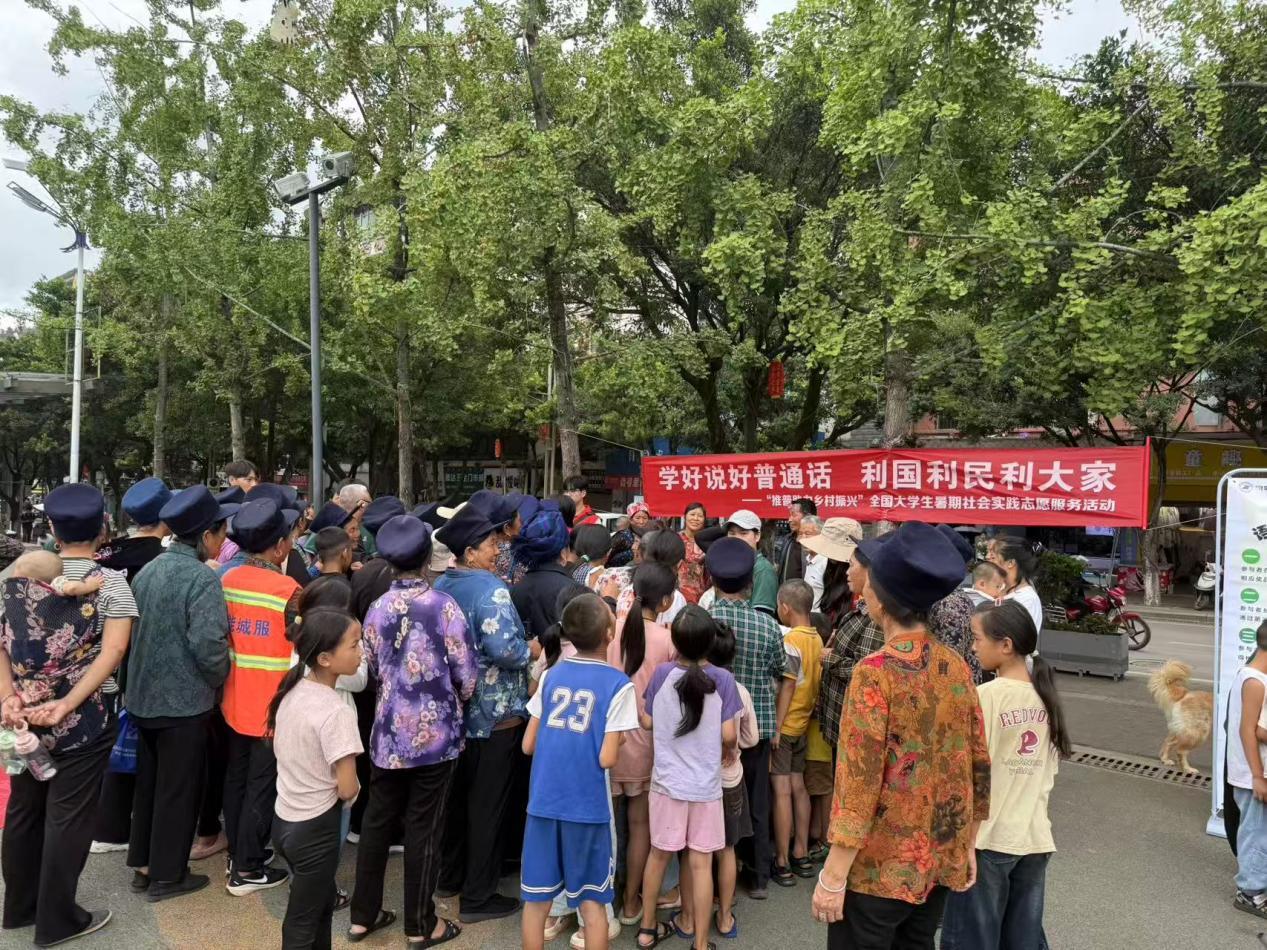 入户调研时,实践团不是带着问卷“打卡”,而是揣着诚意“敲门”。在村民阿依莫家,志愿者发现她曾因只会说彝语,错过电商带货的机会,后在当地政府帮扶下,阿依莫有了自己的电商账号,也能流畅说出自家农产品的特色亮点,“以前觉得普通话是‘外人的话’,现在才知道是能帮我赚钱的‘贴心话’。”;推普市集则是另一场“心与心的对话”,实践团在普格县火把文化广场设下推普摊位,没有生硬的宣讲,而是把“普通话宣传”变成“趣味游戏”:生活用语闯关、彝汉双语传声、民族文化体验,实践团的推普行动早已超越“语言教学”的范畴。“当我们不再只关注教了多少句普通话,而是在意这些话能帮他们解决什么难题时,我们才算真正从‘走进家门’走到了他们的心坎里”,团长朱怡畅这样说。