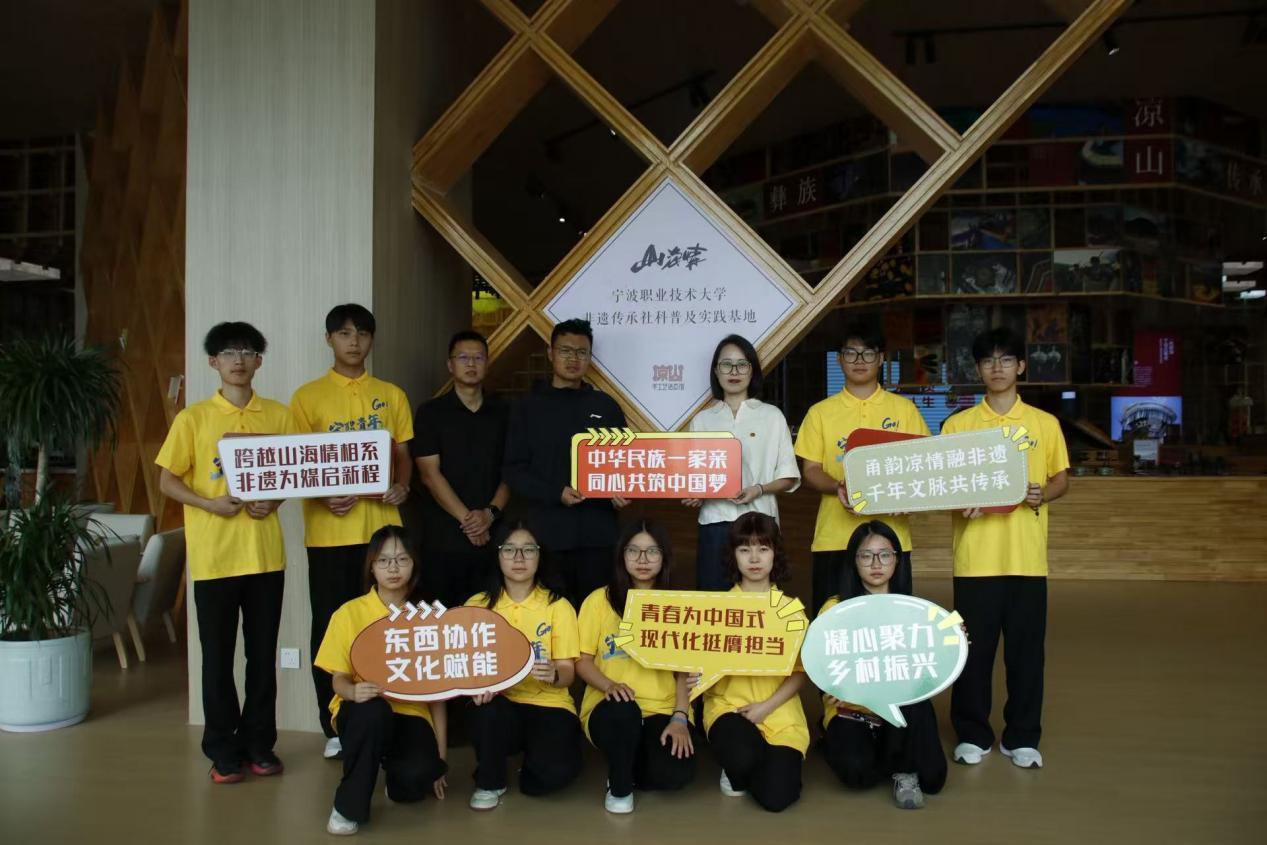 在“凉山手工艺活态馆”这座依托宁波东西部协作资金建成的活态文化空间里,宁波职业技术大学非遗传承社科普及实践基地在此落成。为达成合作,普格县人民政府、普格县东西部协作办、螺髻山景区管理局与宁波职业技术大学团委多次交流,并邀请校方来普格调研,在双方的精心筹备下,让这份跨越两千多公里的文化情缘落地。“守望相助·同心筑梦”实践团指导教师、宁职大团委书记王欣表示,学校高度重视文化传承与创新使命,实践基地的落成,是深化东西部协作的“连心桥”,也是赋能产业升级的“强引擎”。