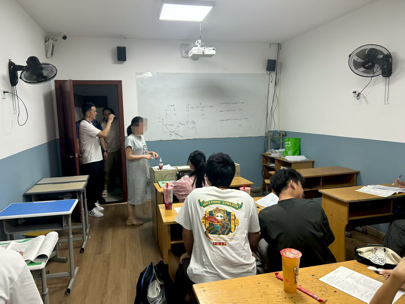 7月21日,丹西街道蓬莱路某托管中心的教室门被推开时,23名六年级学生正专注地盯着黑板,上面残留着未擦解的小升初数学公式。执法队员发现,这家挂着托管招牌的机构,不仅使用《爱学习数学》教材,还制定了详细的7月份教学计划。从早8点到晚5点的课程安排,与其营业执照上不含学科类教育的经营范围形成强烈反差。目前该机构已完成整改。