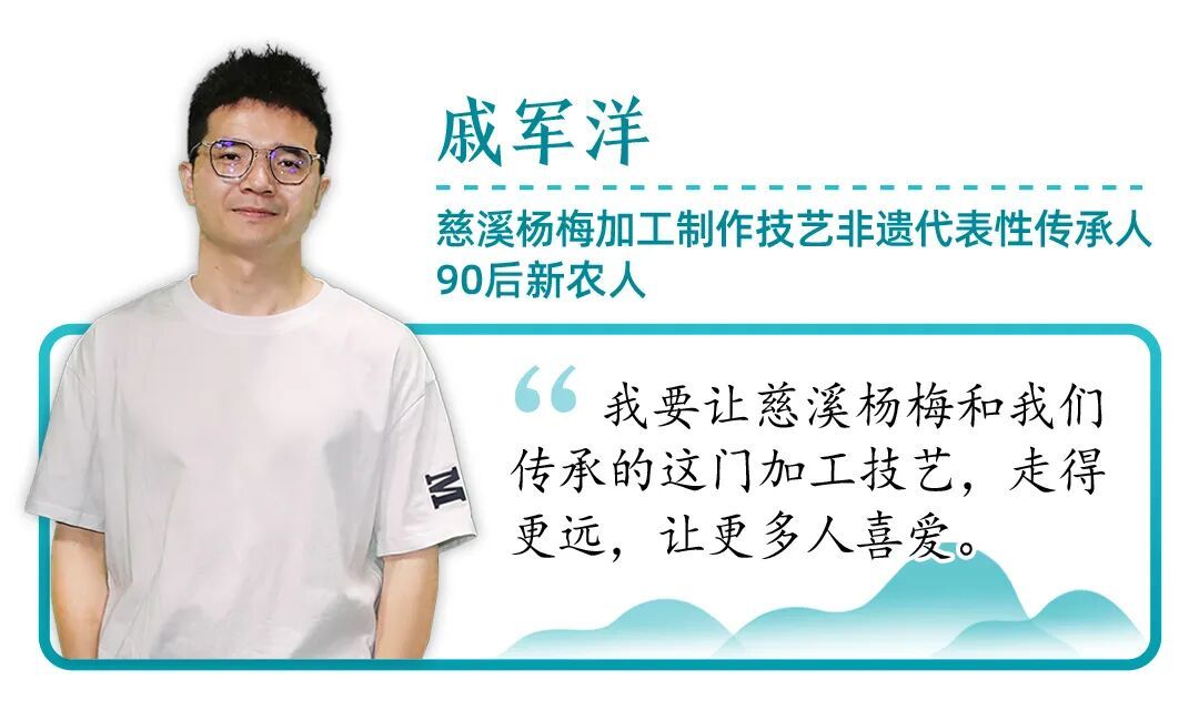戚军洋是一名土生土长的慈溪90后,自幼在杨梅树下长大。2013年,梅雨导致杨梅严重滞销,他亲眼目睹父辈梅农的心血白白烂在地里,便辞去工作,带着全部积蓄返回家乡,立志要为杨梅产业“闯出一条新路”。