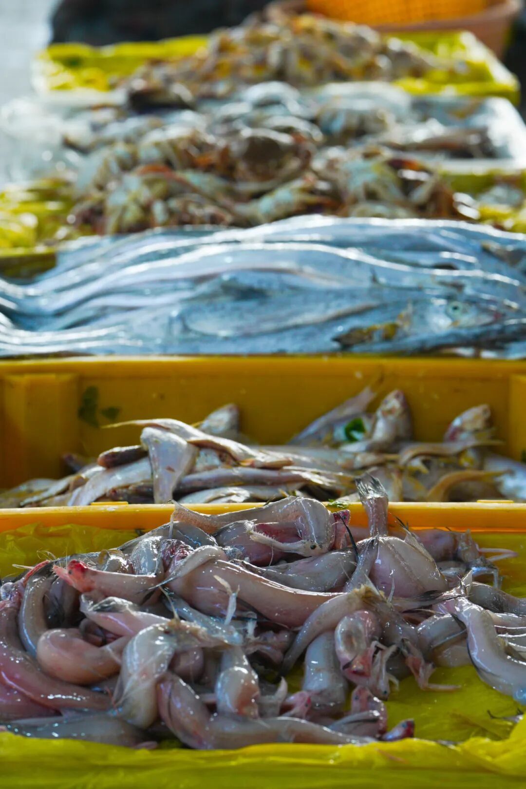 一大批新鲜的虾蟹活鱼