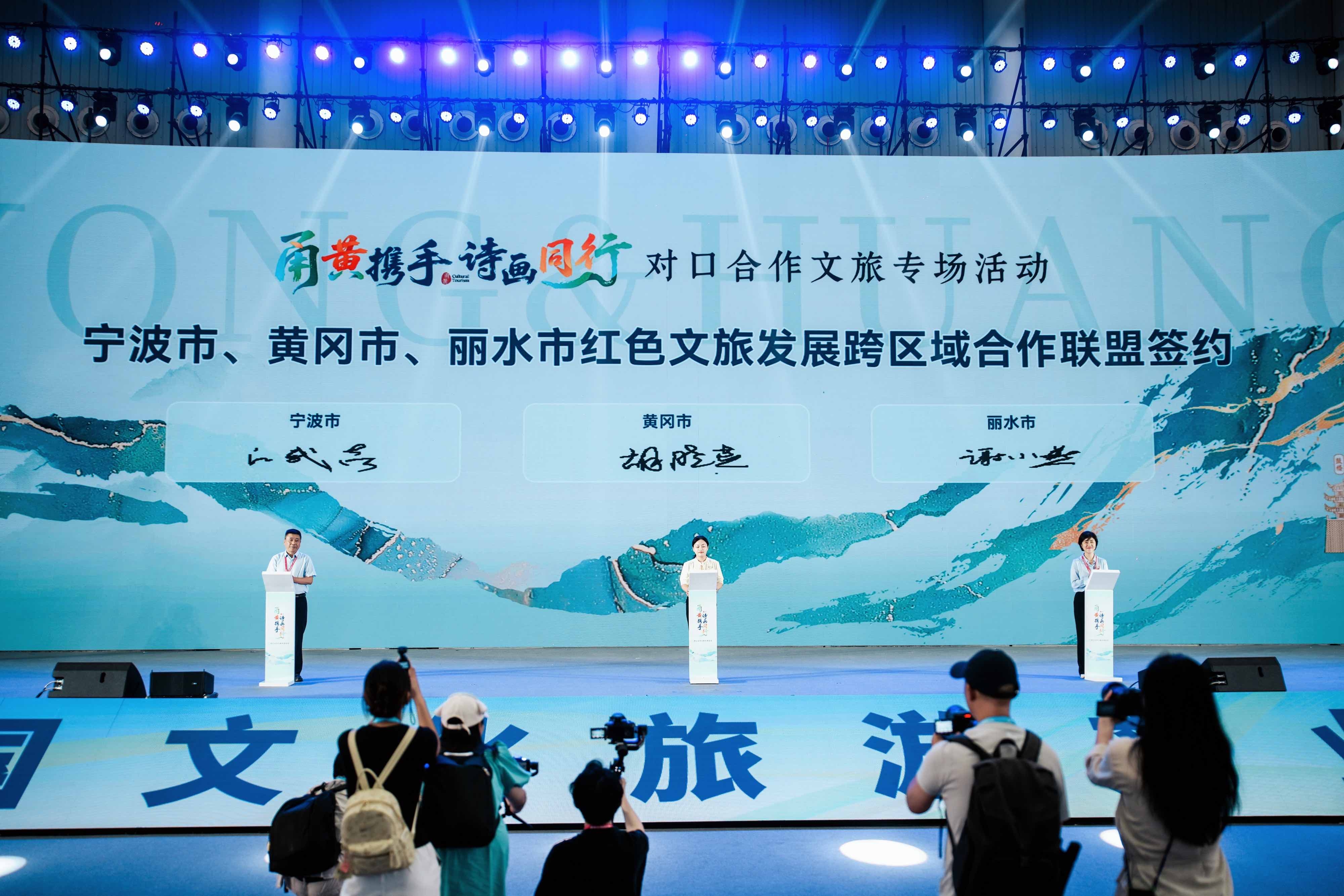 在签约现场,三地文旅合作迈出坚实步伐。宁波、黄冈、丽水三地签署红色文旅发展跨区域合作联盟协议,并共同发布三地红色主题精品线路;宁波、武汉、黄冈三地旅行社协会签署客源互送协议;慈溪文旅集团与蕲春县农文旅公司、宁波饭店业协会与蕲春县药膳产业协会分别签署产业协同发展协议。