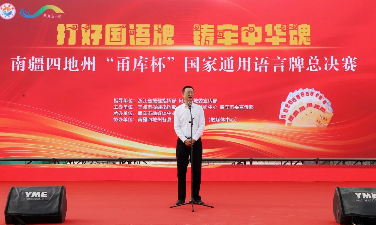 9月16日,由宁波市援疆指挥部、南疆语文教研中心、库车市委宣传部联合主办的南疆四地州“甬库杯”国家通用语言牌总决赛,在库车市南湖广场举行。宁波市援疆指挥部党委书记、指挥长,库车市委副书记、教育工委书记杨勇出席总决赛并致辞。