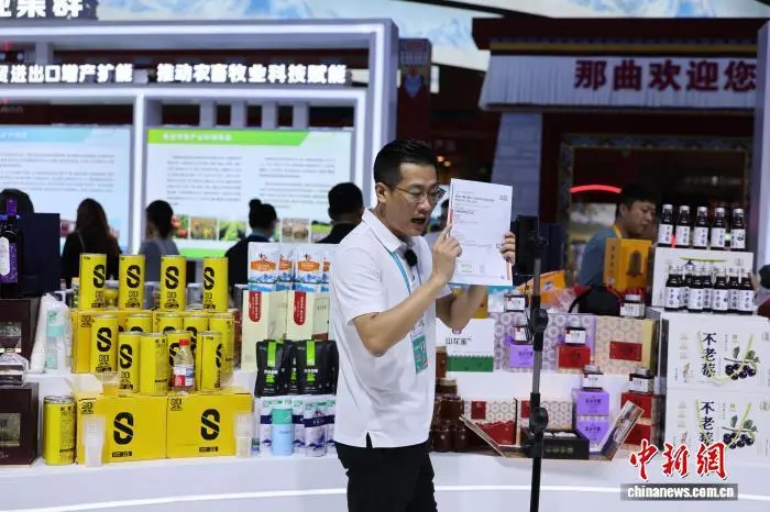 图为活动现场商家在直播。中新社记者 于海洋 摄