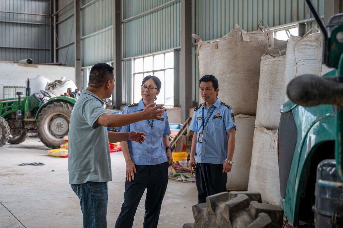 在宁波市北仑区某农机合作社,工作人员逐一检查农机车辆登记挂牌是否有假牌、套牌、污损、遮挡等情况,车辆行驶证是否在有效期内,驾驶人员是否持有合法、有效的操作证件,严防节假日期间各类违法违规行为抬头。