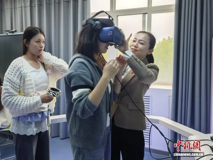 图为“婴幼儿发展与健康管理”专业学生体验VR教学设备。党田野 摄