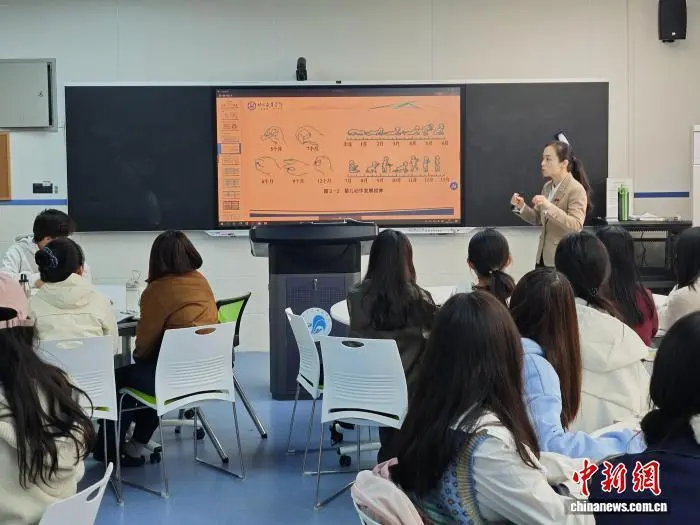 中新网西安10月13日电 (记者 党田野)位于西安城南的陕西学前师范学院是一所以教师教育为主、以培养学前教育师资为特色的高校。2025年4月,陕西学前师范学院获批全国首个普通本科“婴幼儿发展与健康管理”专业。今年开学季,学校迎来了该专业的首批新生。