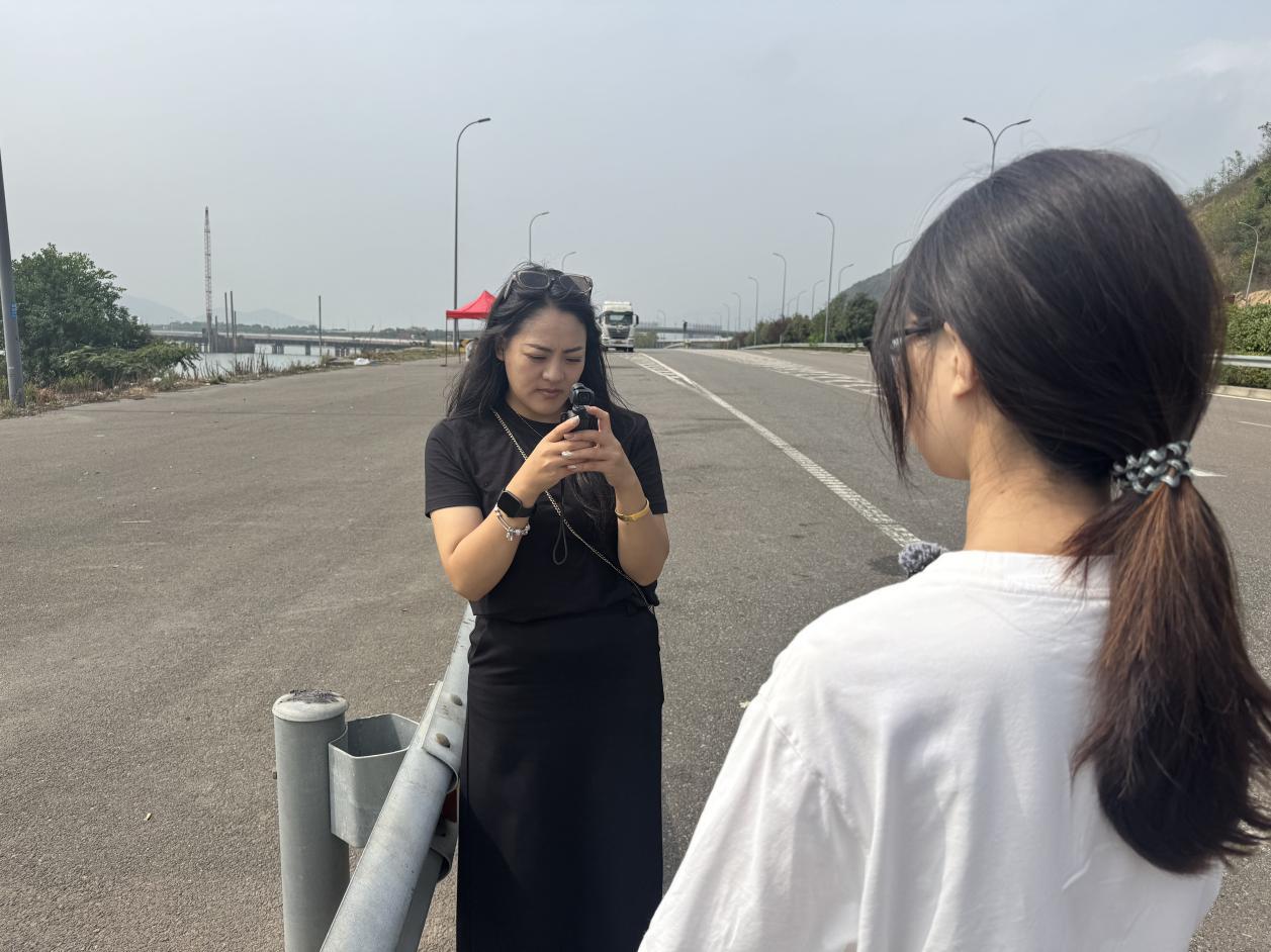 沙马金姑(左)正在学习使用大疆OSMO Pocket 3口袋相机