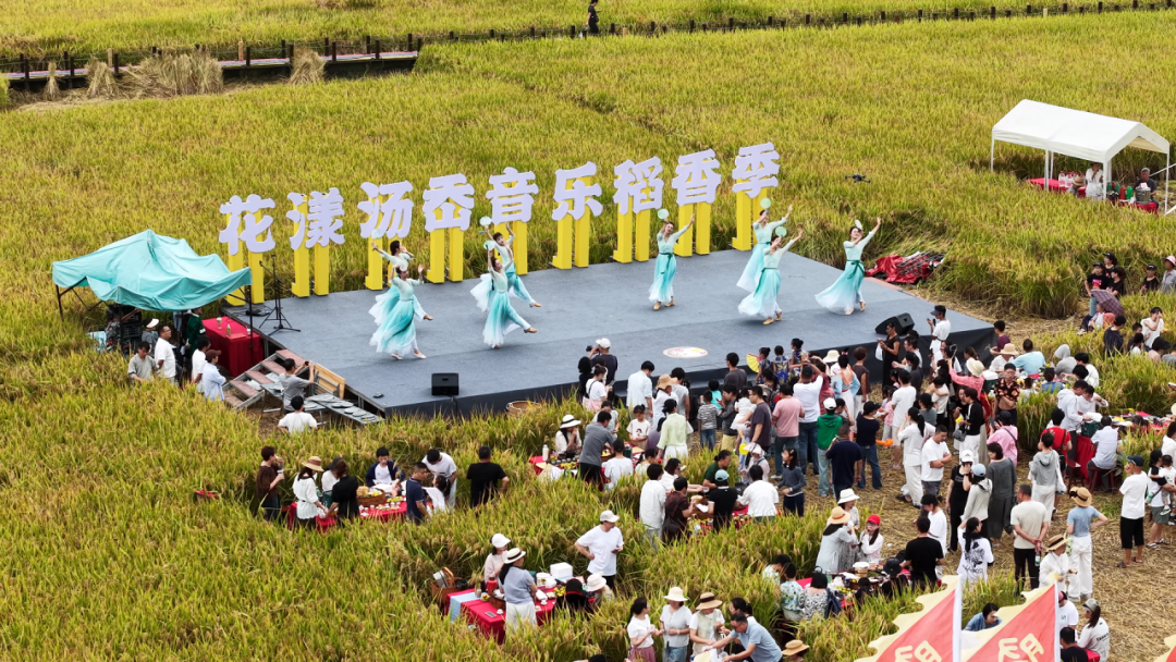 值得一提的是,此次开镰仪式还玩出了“新花样”。活动以“一序、二分、N体验”为框架,新增了稻田瑜伽、稻田音乐会、稻田茶会等现代化休闲项目,让游客在自然中放松身心,感受乡村新风貌。
