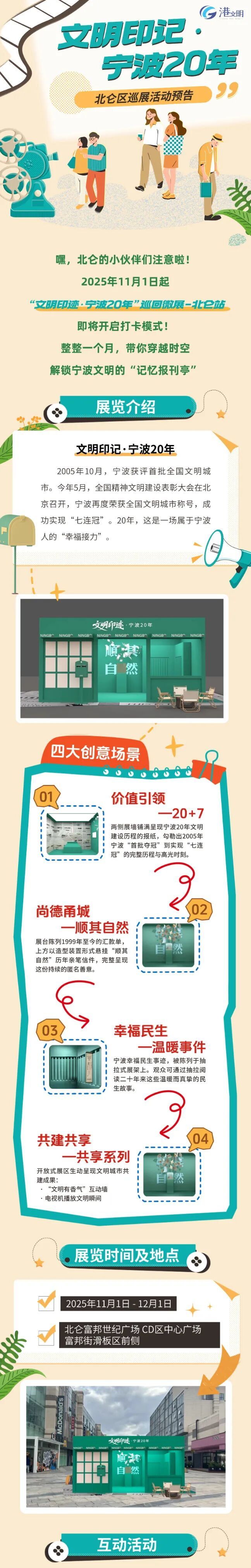 今天(10月26日),“文明印迹·宁波20年”城市巡回微展即将走进江北老外滩。以下是超全配套活动指南,让我们从10月嗨到11月!