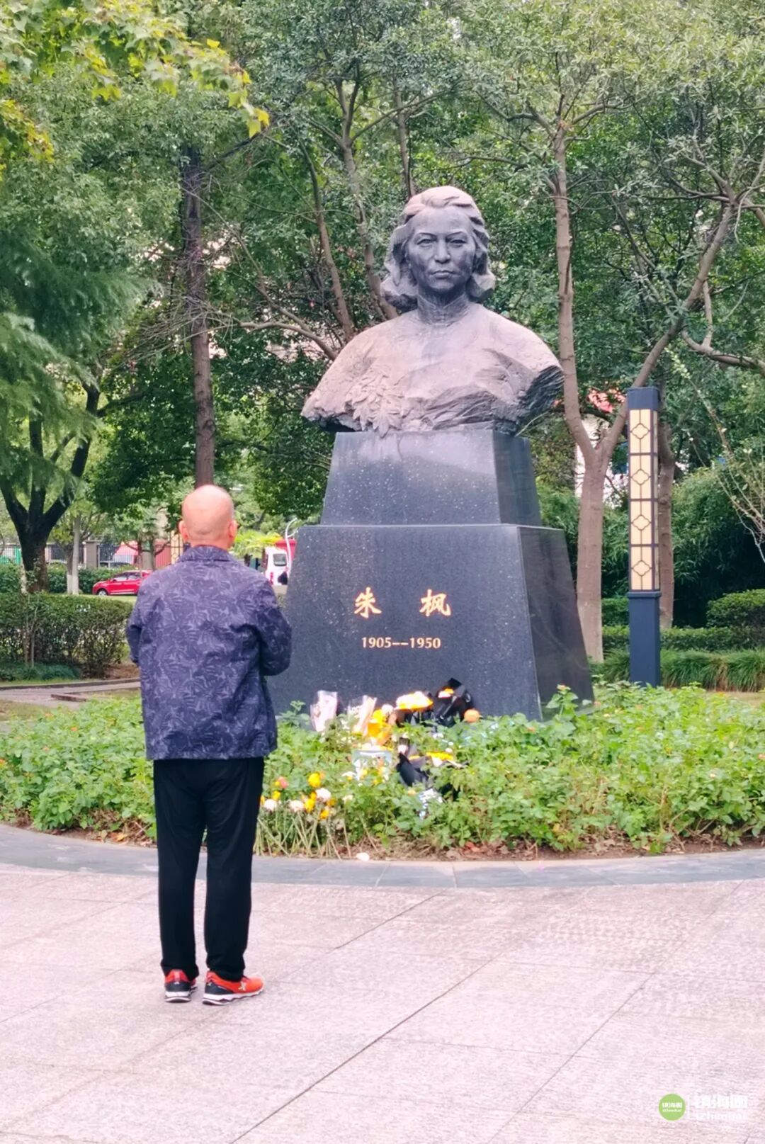 憩园(朱枫故居),是朱枫青少年时代居住和生活的地方,主题建筑为朱枫烈士纪念楼,镇海中学会定期组织师生参加朱枫烈士纪念活动;陵园(朱枫墓园),由墓墙和小型纪念广场组成。枫园(朱枫纪念公园)设3.8米高朱枫烈士半身铜像1座,周边种植红枫、青枫、枫香、雪松等植物,共同诉说着烈士坚贞不屈的革命精神,让这片纪念之地成为红色信仰的生动注脚。