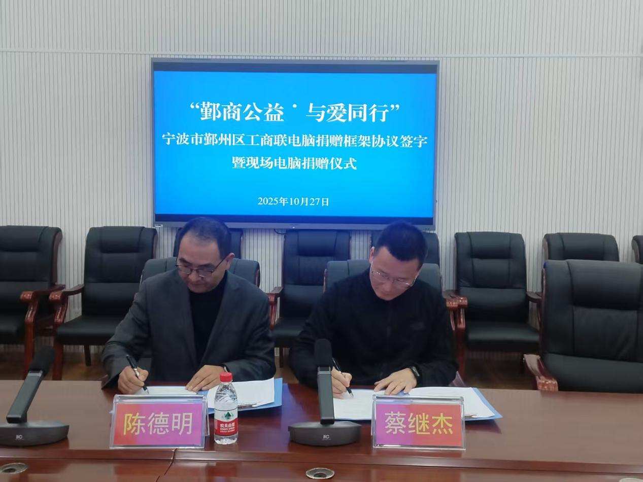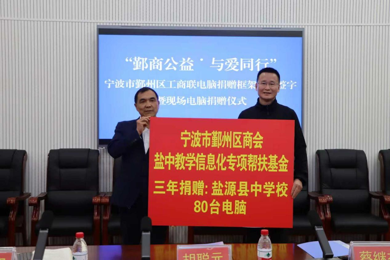 仪式现场,鄞州区工商联副书记、副主席蔡继杰与盐源中学校长陈德明共同签署捐赠框架协议。根据协议,鄞州区工商联将专项筹措盐中信息化帮扶基金,未来三年分批次捐赠电脑共计80台,直接覆盖全校7500余名师生,精准补上学校信息化硬件“短板”。