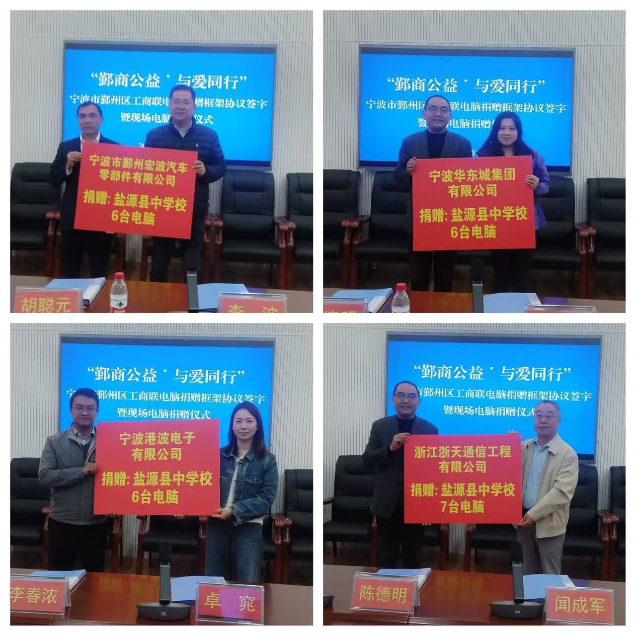 签字仪式后,宁波宏波汽车零部件有限公司、宁波华东城集团有限公司、宁波港波电子有限公司、浙江浙天通信工程有限公司等单位率先行动,捐献给盐源中学首批25台电脑。
