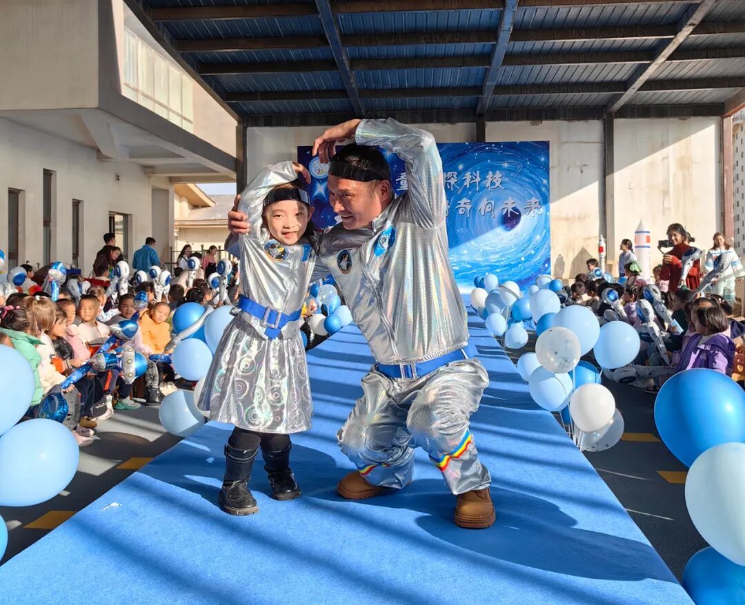 活动伊始,幼儿园部分师生表演《航天》暖场。随后,幼儿园小班、中班学生与家长一起走秀,主持人和学生进行科学小问答互动,引起一阵阵欢呼。接着,库车市科学技术协会的工作人员带领幼儿表演科技节目,将气氛推向高潮。演出结束后,大班幼儿和家长志愿者来到学校操场,体验科学游戏、了解亲子科技作品。现场互动频繁,氛围融洽而热烈。