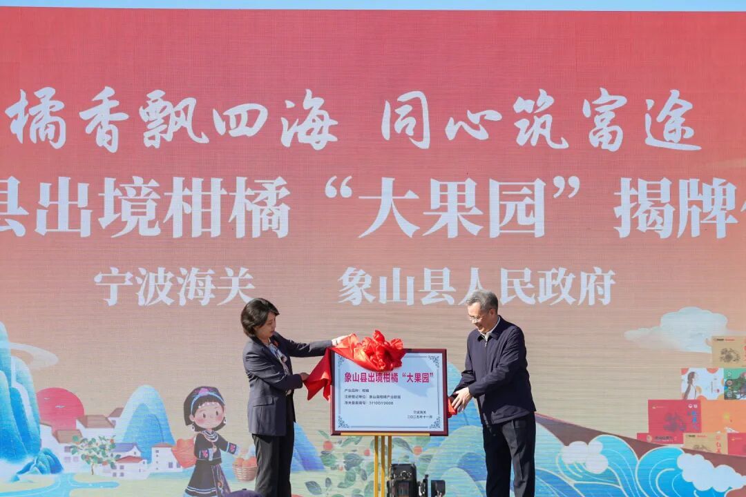 活动现场举行了象山出境柑橘“大果园”揭牌仪式。在宁波海关动植检处和象山海关的鼎力支持下,象山成功创建全国首个“红美人”柑橘出境大果园,标志着“红美人”国际化征程迈出关键一步,为进一步打通柑橘国内国际双循环销售渠道奠定坚实基础。