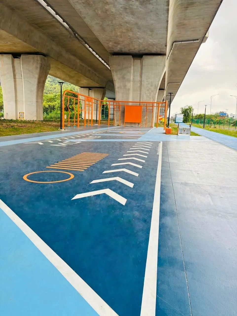 此外,空间内还设置了多组休息长椅、遮阳棚,方便居民随时歇脚;步道旁设置了垃圾分类投放点,保持环境整洁。这些细致入微的设计,让桥下空间不仅美观实用,更满溢着浓浓的“人情味”。