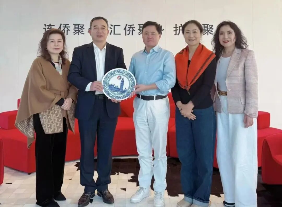 11月14日下午,英国中华总商会常务副主席何其华携同英国中华总商会副主席毕丽俊、钱益君、毛董杰一行到访宁波市侨联。宁波市侨联党组成员、副主席兼秘书长牛洪波在鄞州区“侨界会客厅”会见访问团一行。