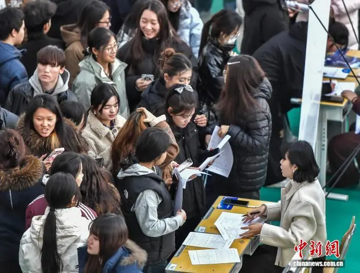 11月19日,新疆乌鲁木齐市,“就业起航·职通未来”2025高校毕业生秋季综合类校园招聘会在新疆师范高等专科学校亚心校区举行,涵盖工商管理、文化创意、计算机、教育等多个领域的近百家企业到场,提供就业岗位2000余个,吸引该校3500余名即将毕业的学生前来寻找就业机会。中新社记者 刘新 摄