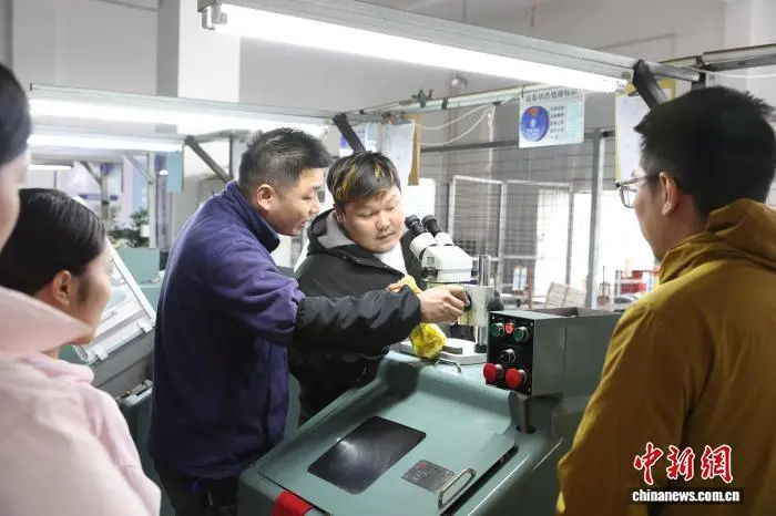 中新网上饶11月25日电 (朱莹 邱日青)“课堂上学习的理论在这里变得触手可及。”日前,在江西上饶市广丰区一侨资企业车间,夹杂着机器轰鸣,来自泰国的“洋学徒”阿努颂一边感叹,一边全神贯注地操作着机器生产设备,他的师傅——上饶市寸金职业培训学校(以下简称“寸金职校”)的老师在一旁“手把手”悉心指导。
