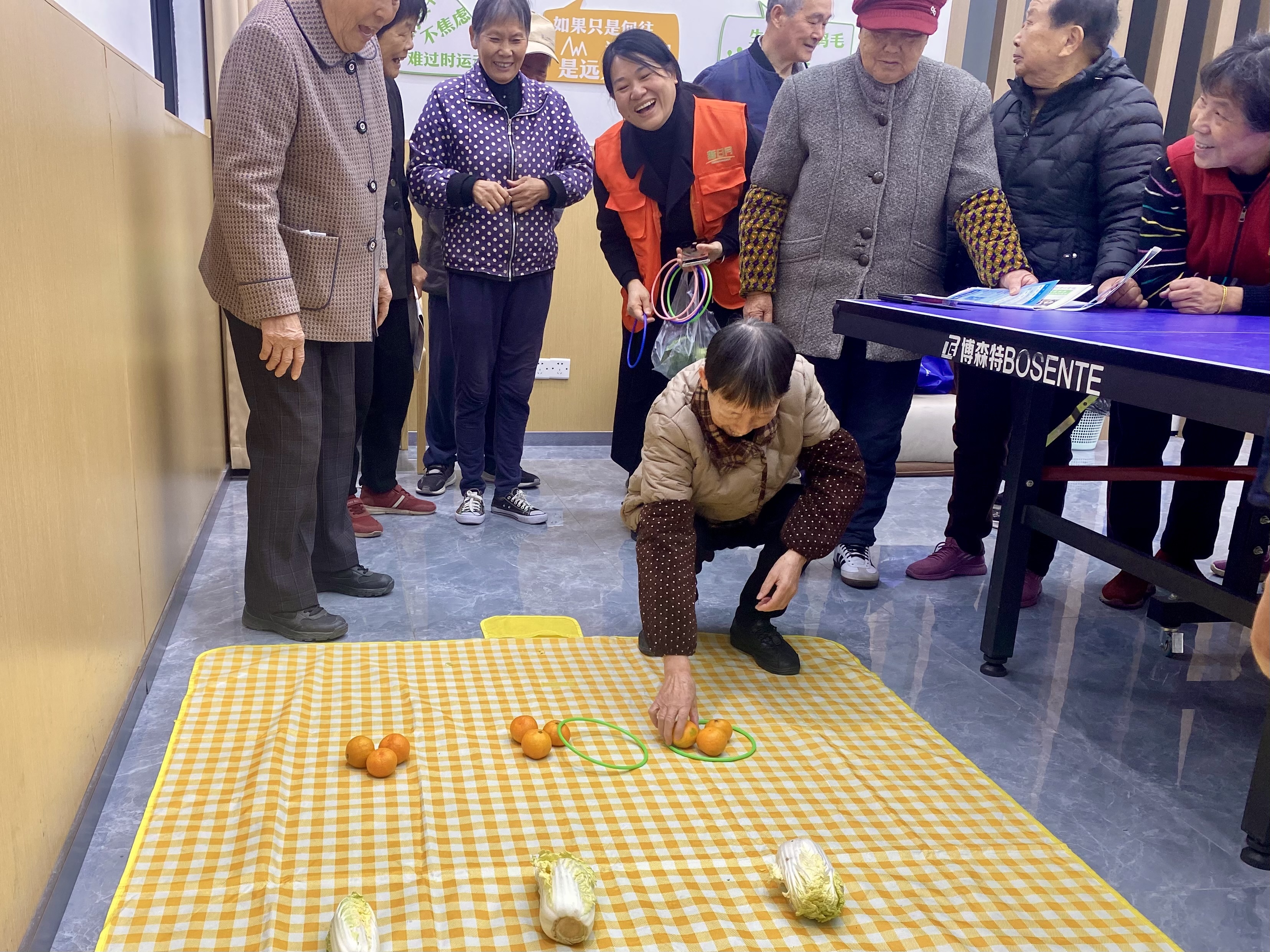 活动现场,社区网格员们将品种多样的蔬菜整齐地铺满地摊,仿佛一片绿色的海洋。老人们兴致勃勃地参与其中,抛出的一个个圈,就像一段段涌现的儿时回忆,让他们沉浸在游戏的乐趣之中。欢声笑语此起彼伏,大家尽情享受着这难得的欢乐时光。