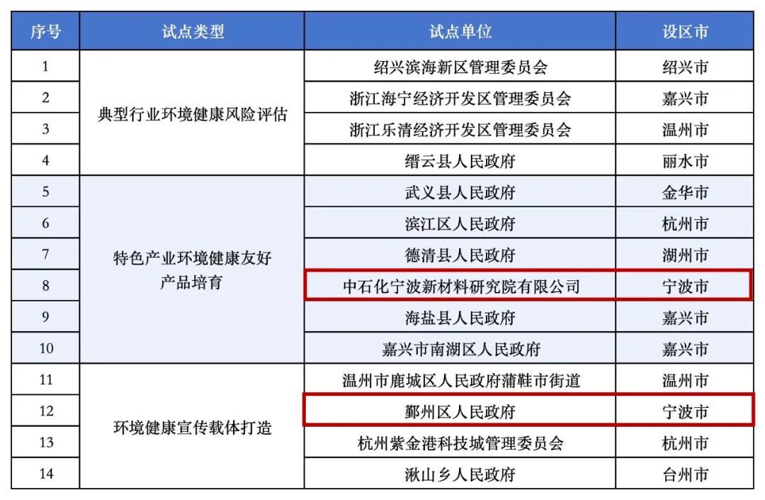 近日,浙江省生态环境厅正式公布了第三批省级环境健康友好创新试点名单,中石化宁波新材料研究院有限公司、鄞州区人民政府作为试点单位成功入选。面对评选标准严苛、竞争激烈的省级试点遴选,我市两家单位凭借其扎实的工作基础、清晰的实施路径和突出的创新价值,从全省众多申报单位中脱颖而出。