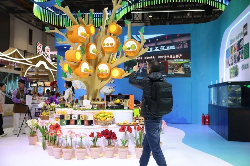 动态展示区更是人气爆棚。水箱中,岱衢族大黄鱼、石斑鱼自在游弋,配合图文展板生动呈现宁波“蓝色粮仓”的绿色发展密码,成为观众打卡的热门点位;造型别致的红美人柑橘树上挂满硕果,陈列的柑橘果汁、香薰等衍生产品,直观展现了宁波柑橘产业的全链条创新成果,不少观众驻足咨询。