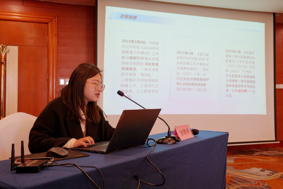 在实践中探索创新,在创新中深化提升。来自杭州定川信息技术有限公司的专家分享了河湖管护数字化应用和实践,安吉县水利局相关负责人做了水生态产品价值实现安吉实践的生动分享,江北区就“AI河长”一体化智慧巡河项目做了专题介绍。