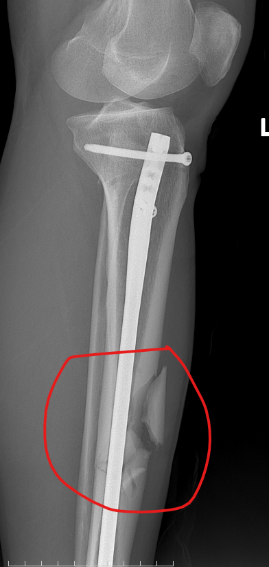 患者为72岁藏族男性,因摔伤导致左胫骨中下段骨折。面对高龄、骨质疏松、骨折不稳定等多重挑战,若沿用传统手术方式,不仅复位难度大,术后恢复也面临较高风险。在宁波大学附属人民医院援藏专家朱峰老师的带领下,骨科团队经过深入讨论,决定采用目前国内外先进的“髌上入路髓内钉内固定术”。该术式创伤小、固定牢靠、恢复快,尤其适合高原地区的老年患者。
