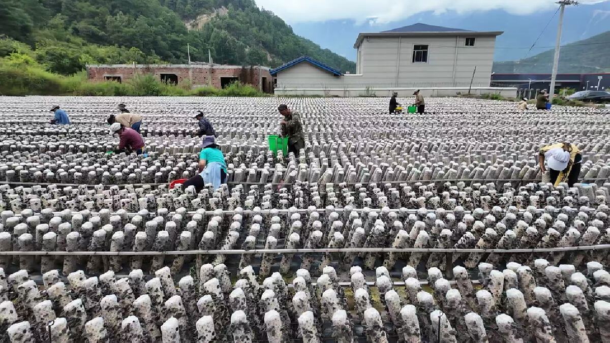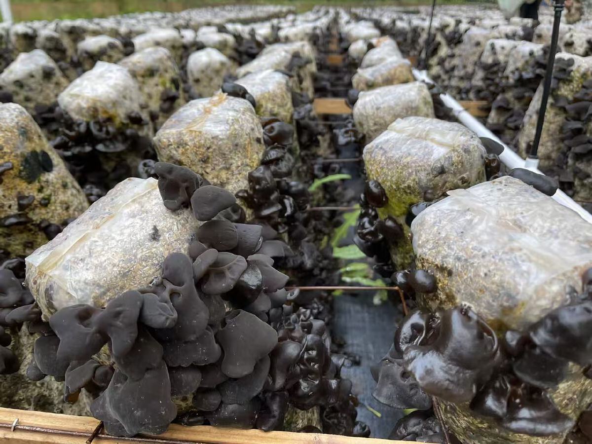 工人们穿梭于菌棚之间,称重、打包、装车……一批批新采收的干木耳正通过企业保底渠道发往全国。本轮采收干木耳达5万斤,预计实现产值逾130万元。晨露中,黑亮润泽的木耳舒展如绸,与青山环抱下的整齐菌棒相映成趣——这颗被当地人称为“田间黑珍珠”的高原特产,正成为东西部协作结出的共富果实。