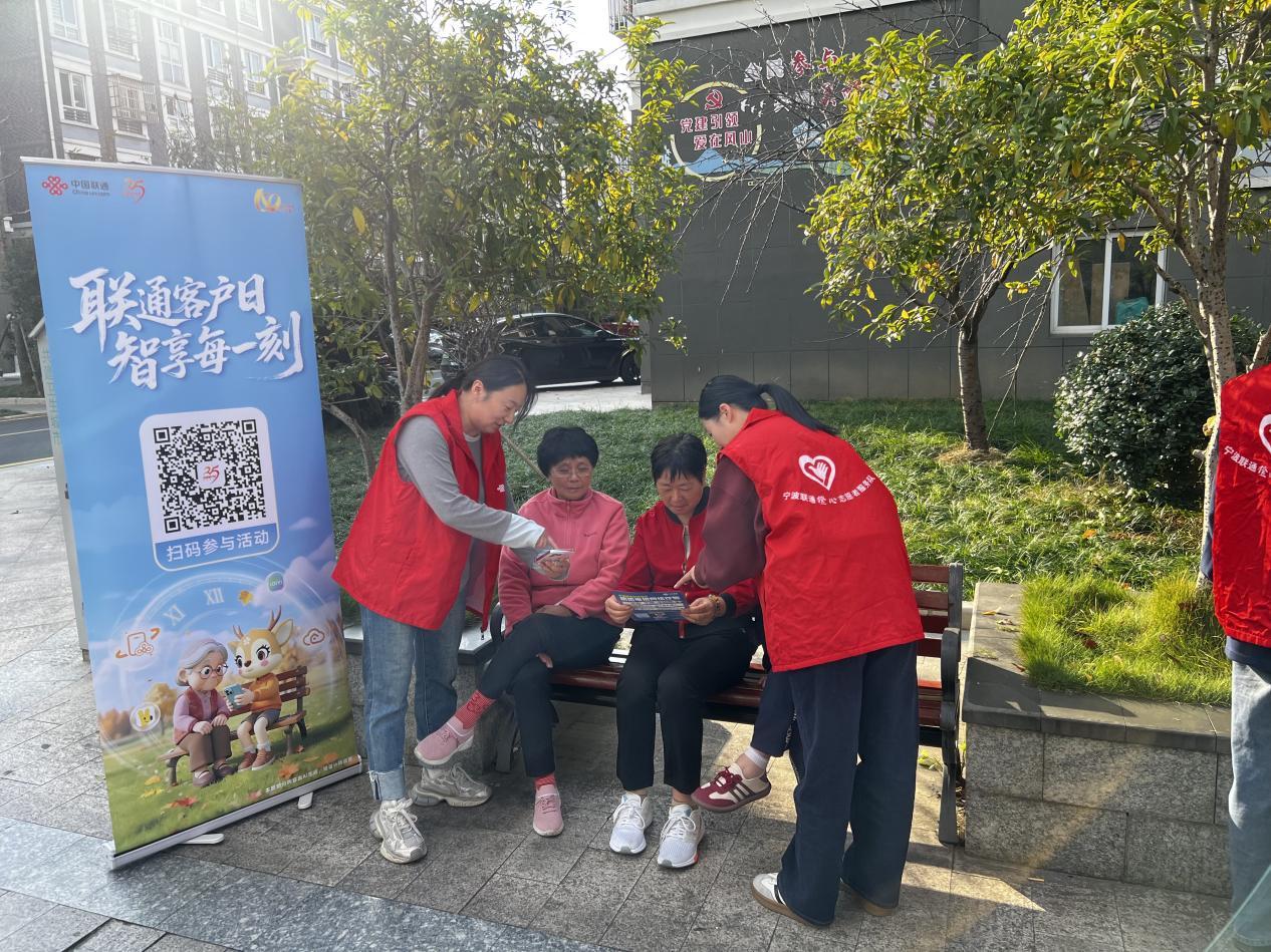 慈溪联通走进坎墩街道五塘新村,开展“让父母玩转智能手机 + 老年人反诈宣传”主题活动。志愿者们结合近期高发的老年人网络诈骗案例,用通俗易懂的语言,深入讲解“虚假投资理财、冒充亲友借钱、保健品虚假宣传”等诈骗套路。同时,反复提醒老年人“不轻信陌生来电、不透露个人信息、不转账汇款”,强化他们的反诈意识和自我保护能力,助力老年人安心使用智能手机。