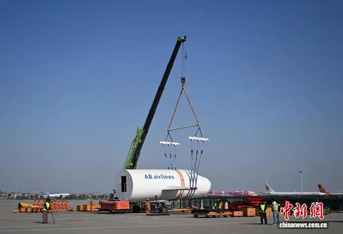 12月9日,残损航空器搬移科目在停机坪附近演练。当日,浙江杭州萧山国际机场举行“杭安·2025”航空器应急救援综合实战演练。本次演练模拟国际客运进港航班特情,设置航空器空中故障、人员救治与转运、无人机反干扰处置、残损航空器搬移等15项科目,通过跨部门实战化联动,全面检验机场及各救援单位的综合应急处置能力。中新社记者 王刚 摄