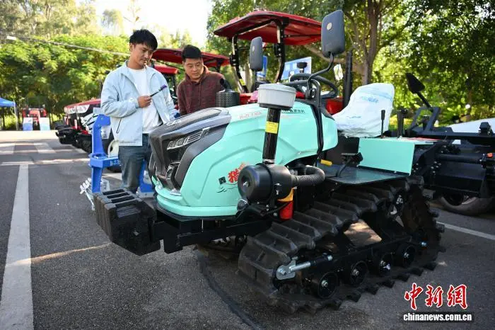 12月9日,2025云南·元谋第九届蔬菜种业博览会在云南省楚雄彝族自治州元谋县开幕,百余家知名种业、农资、农机、种植企业集中亮相。图为观众观看展出的农机。中新社记者 刘冉阳 摄