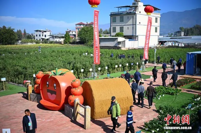 12月9日,2025云南·元谋第九届蔬菜种业博览会在云南省楚雄彝族自治州元谋县开幕,百余家知名种业、农资、农机、种植企业集中亮相。图为观众在元谋现代种业科技园参观。中新社记者 刘冉阳 摄